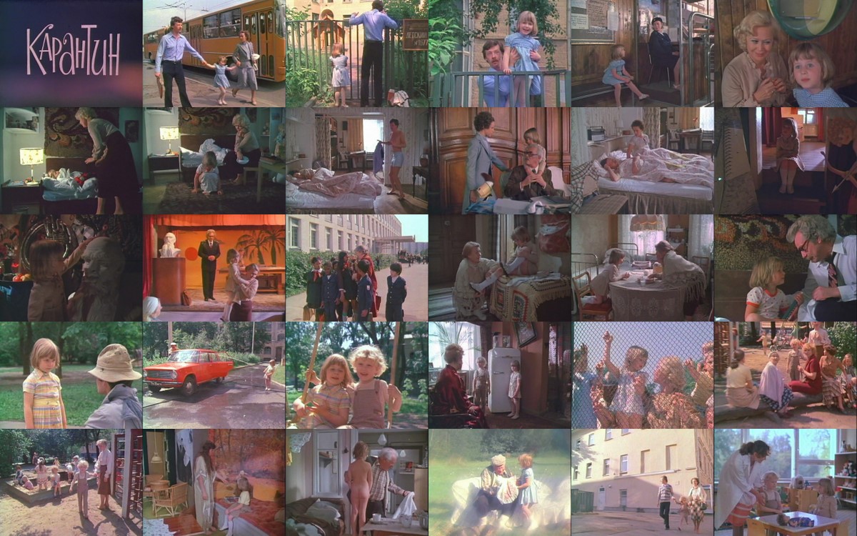 Доброе советское кино для семейного просмотра: всего один день из жизни простой советской семьи - в детском саду, который посещает Машенька, случился карантин и оказалось, что девочку не у кого оставить - все заняты важными и неотложными делами, даже прабабушка и прадедушка всё ещё работают. Поэтому Маше приходится скитаться по родственникам, друзьям, коллегам и даже случайным знакомым, но это приключение совершенно никого не печалит, Маша узнаёт много нового и интересного, а её "нянькам" так же скучать не приходится... Masha, an adventurous five years old girl tries to find what to do while her preschool is closed for quarantine. Режиссер: Илья Фрэз / Ilya Frez. В ролях: Лика Кремер, Евгения Симонова, Юрий Дуванов, Светлана Немоляева, Юрий Богатырев, Татьяна Пельтцер, Павел Кадочников, Лидия Федосеева-Шукшина, Елена Соловей, Нина Архипова, Любовь Соколова, Владимир Антоник, Александр Пашутин, Иван Рыжов, Evgeniy Karelskikh. СССР, к/ст им. Горького, 1983. Язык: русский. Download Карантин / Karantin.